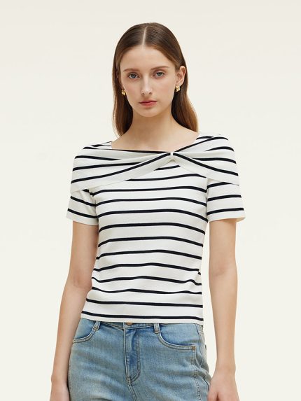 Tencel Black And White Stripe Women Top $69.00