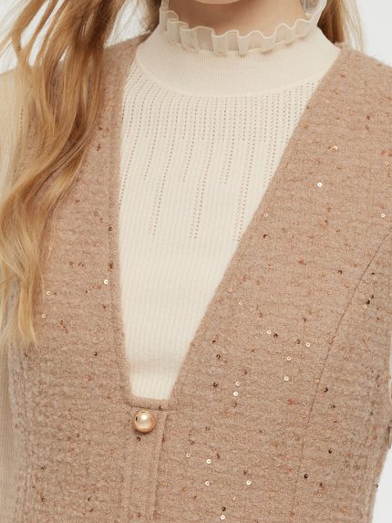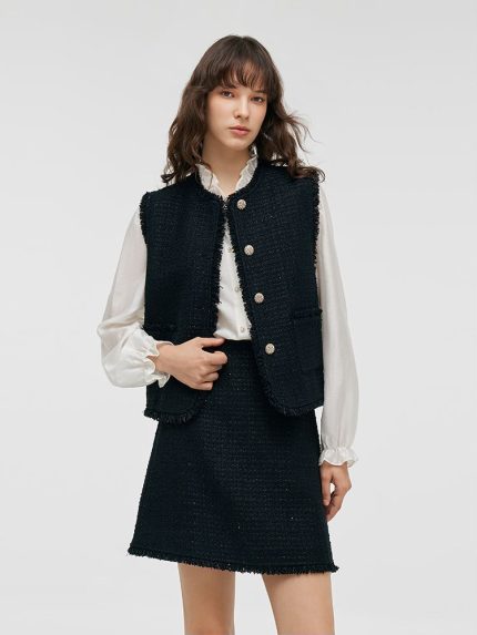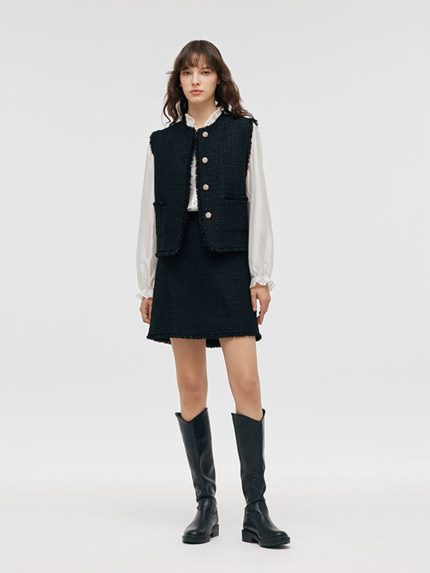 Tweed Women Vest And A-Line Skirt Two-Piece Set