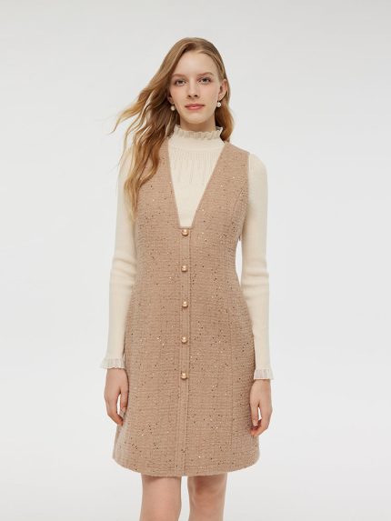 Slim Sweater And Tweed Vest Dress Two-Piece Set $119.00