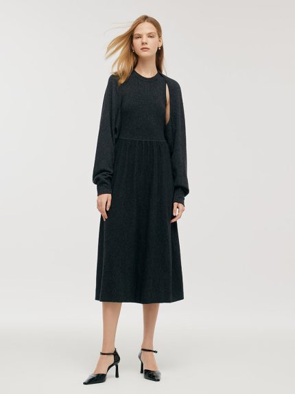 Wool Blend Mini Dress And Knit Top Two-Piece Set