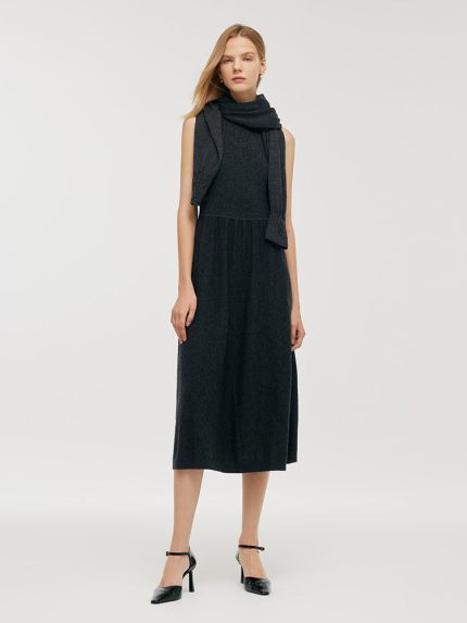 Wool Blend Multi-purpose Scarf And Sleeveless Knitted Midi Dress Two-Piece Set