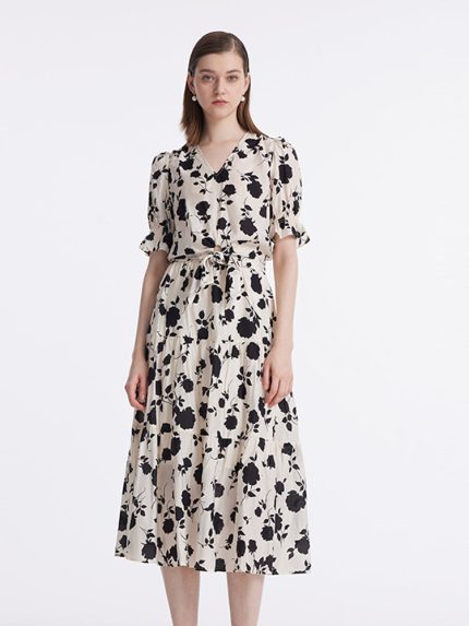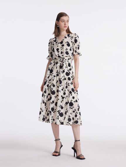 Acetate Rose Printed Blouse And Half Skirt Two-Piece Set