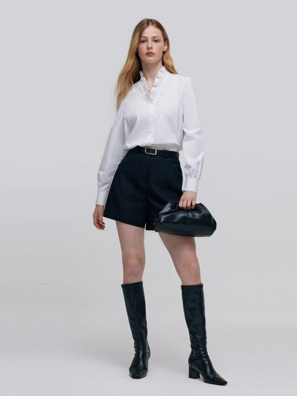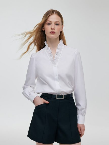 Ruffle Collared V-Neck Women Shirt
