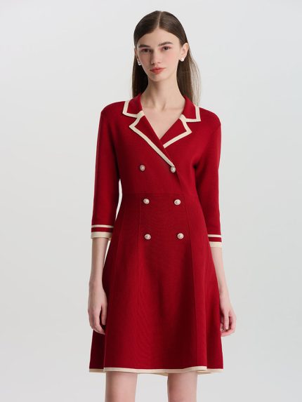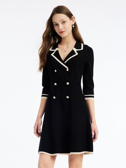 Fitted Double-Breasted V-Neck Mini Dress